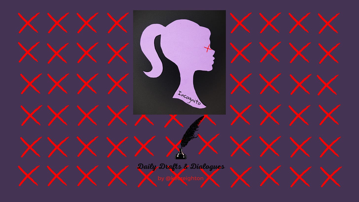 Incognito will be published on Substack. I will share a link to the new Incognito Substack publication in Substack Notes and in a Daily Drafts & Dialogues post as soon as it is available. I will also share it on social media and in my Linktree: linktr.ee/K_E_Creighton